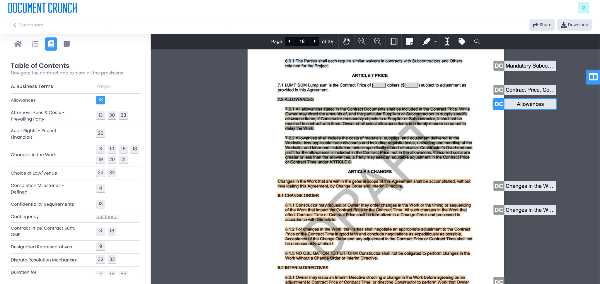 Imagine if your contracts could highlight a risky material price escalation clause AND advise on a better price structure based on the current rate of inflation? We’re already working with one of the largest construction insurers in the world, AXA XL, to provide our users with benchmarking reports on how their contracts compare to their peers. For the sake of your attorneys, your financial health, and especially your project managers, schedule a demo of Document Crunch to get control of your contracts today.