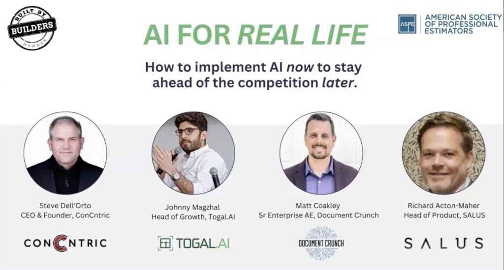 - AI is already saving time on tasks like takeoffs, spec reviews, and reporting — without replacing human expertise.